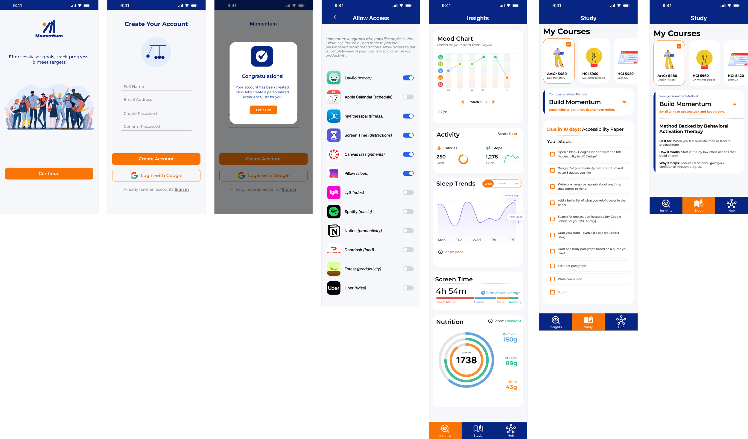 Designed a mobile app that supports student motivation and well-being through personalized insights, habit formation, and restorative study tools