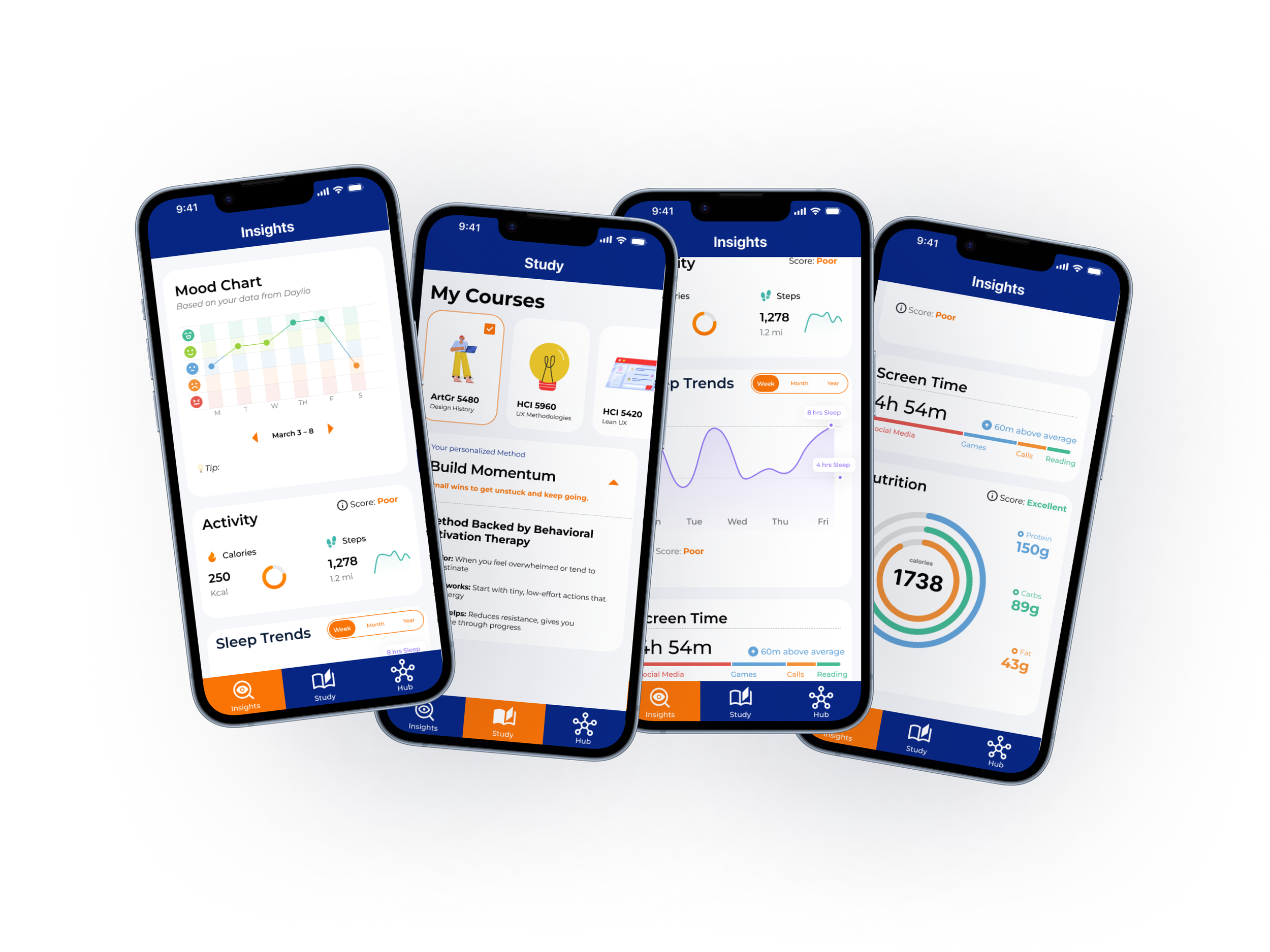 However, early iterations revealed that requiring frequent user input created friction and increased cognitive load. These features were gradually simplified or removed in favor of systems that relied more on passive data and automated insights. Through multiple iterations, the design evolved toward a lightweight experience that reduced effort for the user while still offering meaningful support.